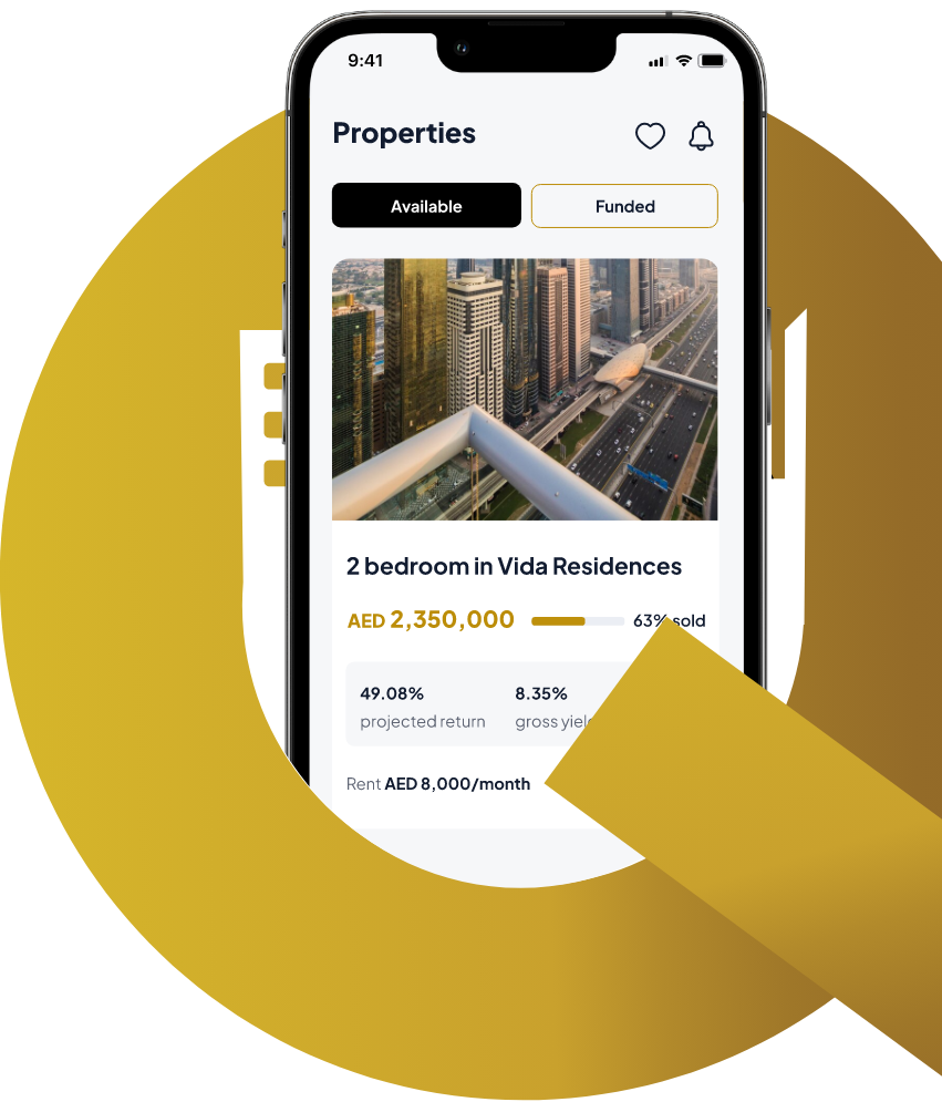 Digitally invest in prime rental properties from only AED 500 (USD 136), no matter where you are in the world!